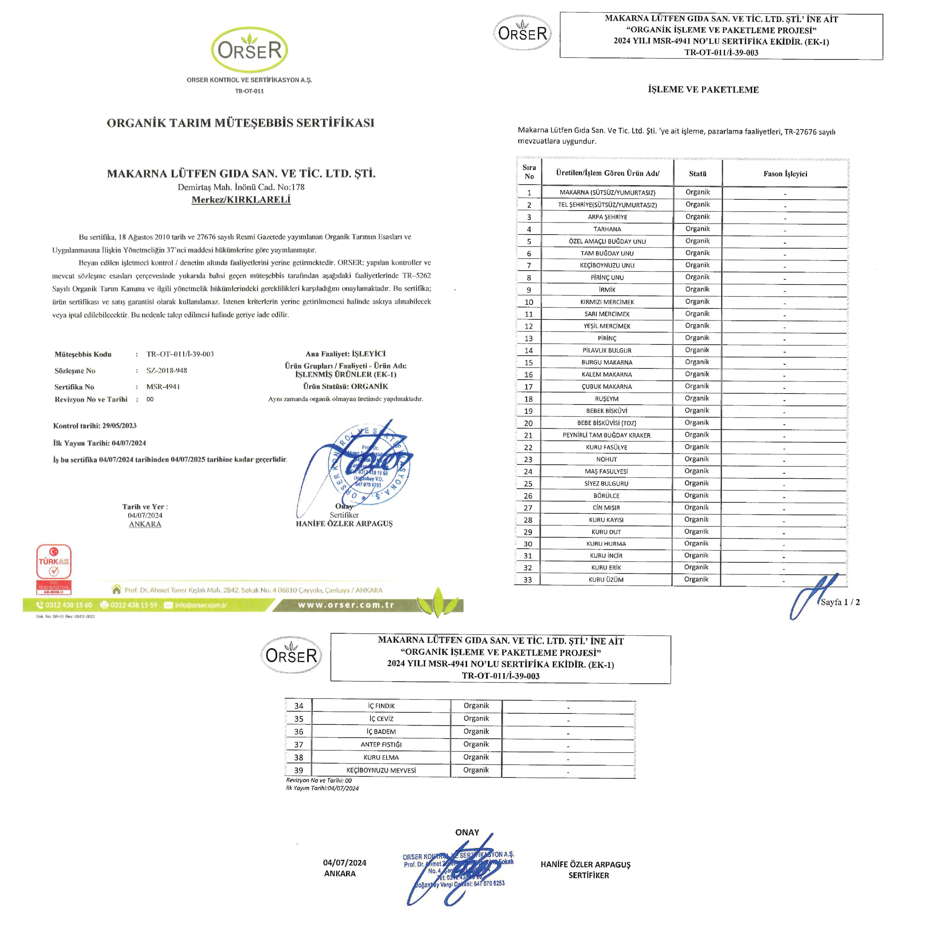 sert kabuklu meyveler ile ürünlerin işlendiği ortamda üretilmiştir. Eser